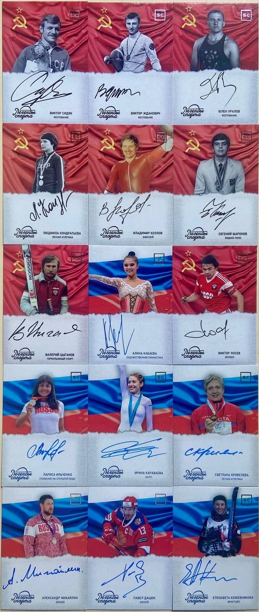 Спортивно-исторический проект «Зал тренерской славы» и компания Sport Cards продолжает серию уникальных коллекционных карточек «Легенды спорта». Спустя три месяца представлена новая часть – юбилейная, 10-я. Это 15 карт с оригинальными автографами великих советских и российских спортсменов. Вместе они одержали «всего» 10 побед на Олимпийских играх, но каждый является настоящей легендой своего вида спорта. Об этом сообщает Агентство «Весь спорт».